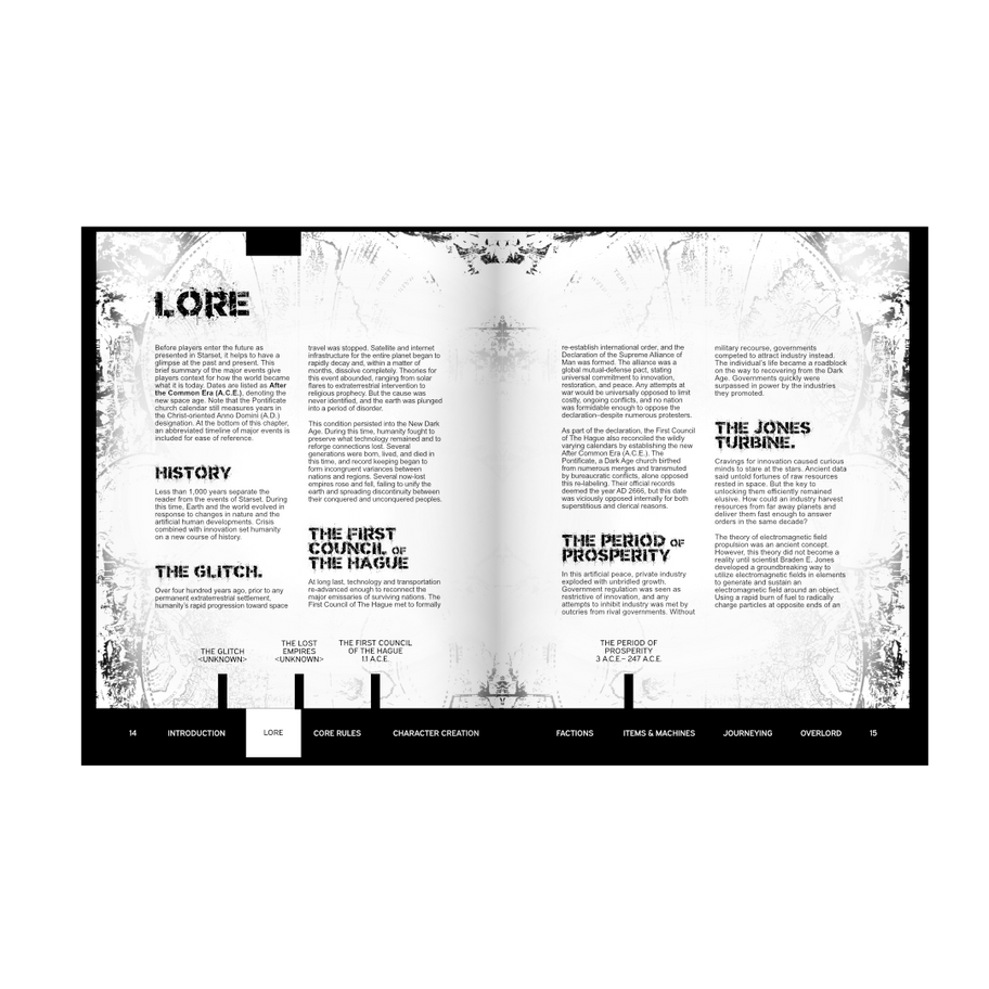 Starset: The Great Dimming (PDF $16.99) is a tabletop roleplaying game designed to tell hopeful, horrifying, and thought-provoking stories staged in a grimdark future.
